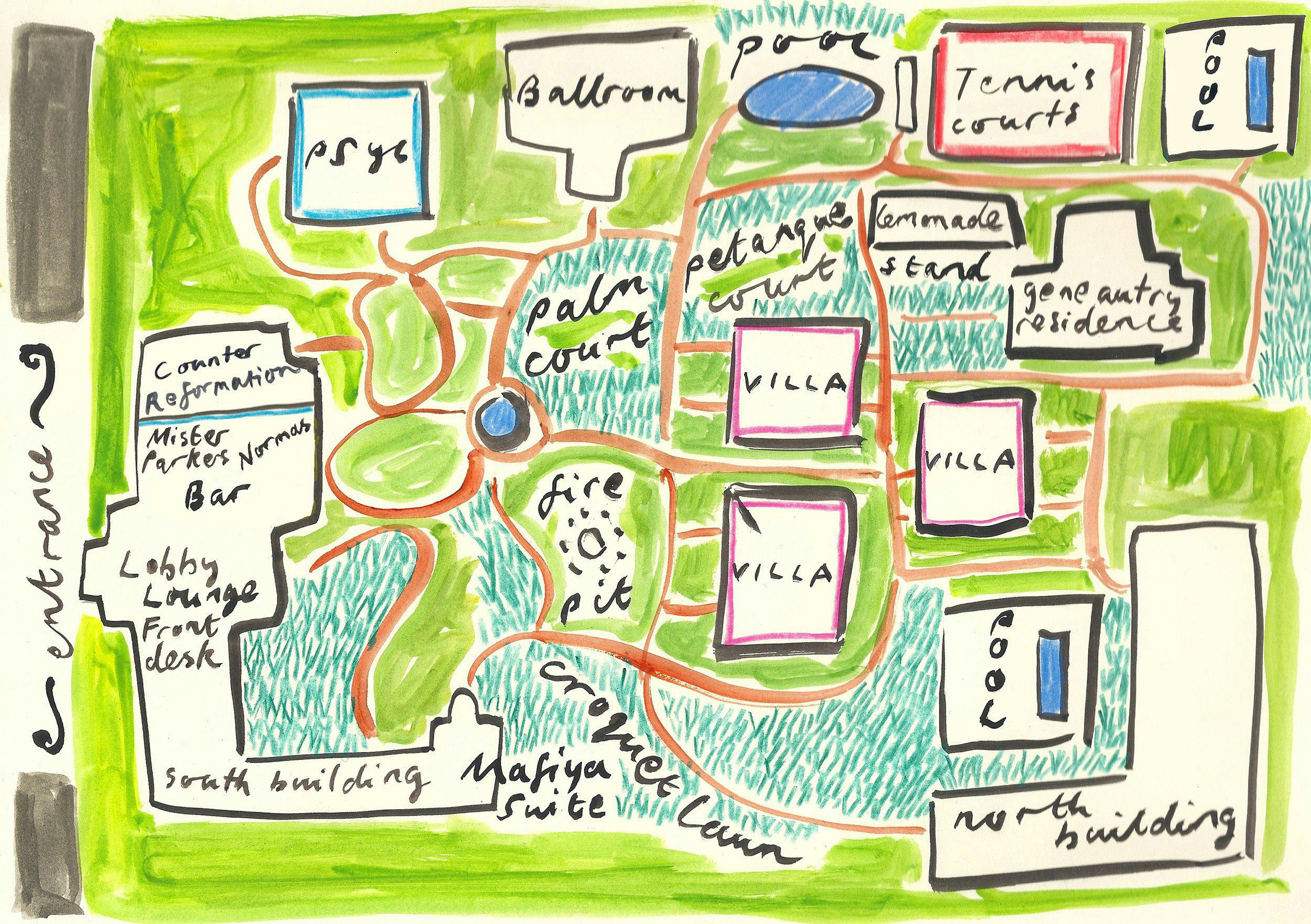 The illustrations were printed in a special guidebook, to be given to each guest on arrival.