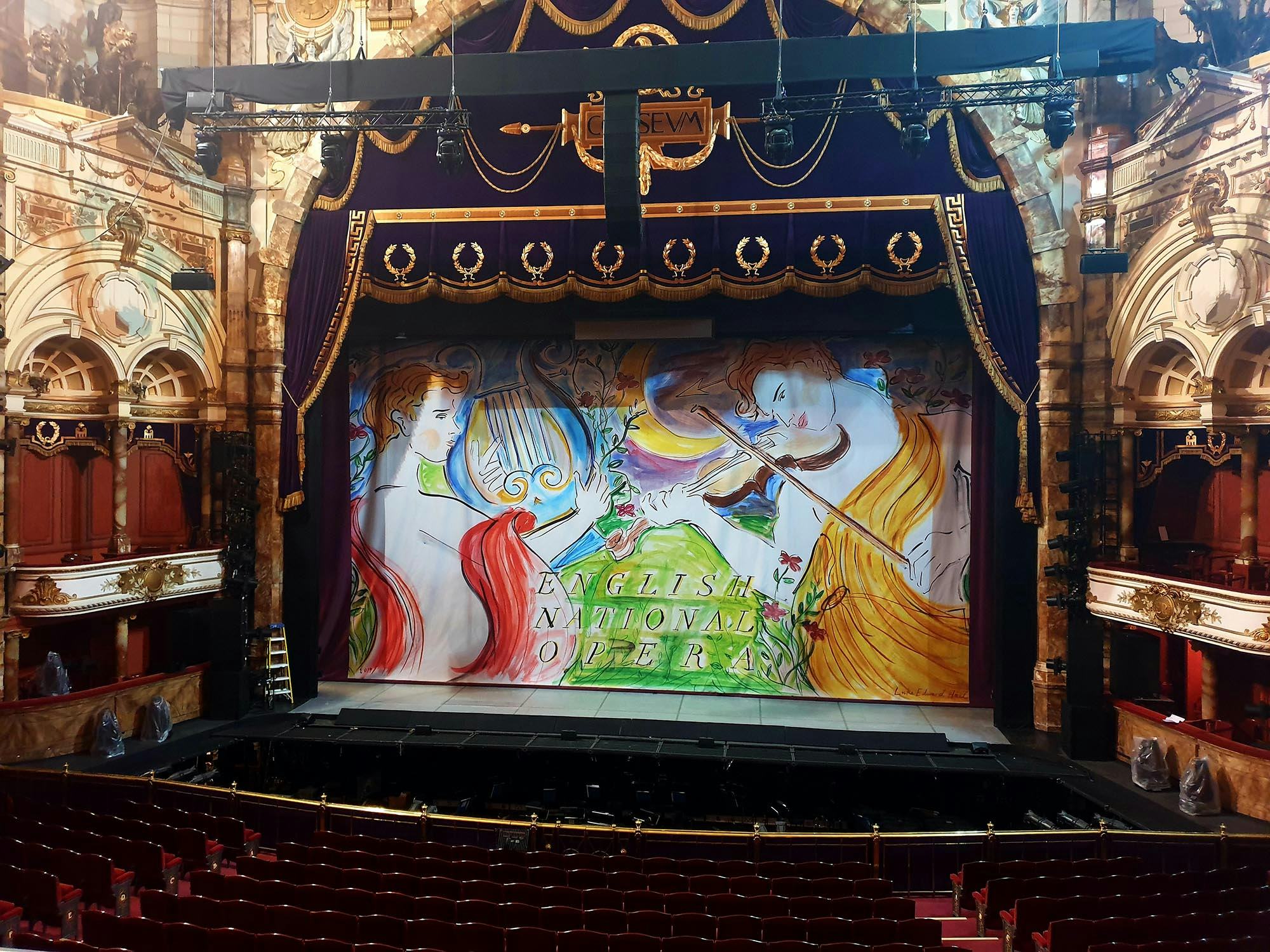 In September 2019, English National Opera unveiled a new annual project to redesign the safety curtain in the London Coliseum’s auditorium. Named in honour of long-standing ENO collaborator Sir Jonathan Miller, the new Jonathan Miller Safety Curtain will be commissioned each season, giving the London Coliseum a canvas to showcase new and innovative design. Each year a new artist will be invited to design the curtain. Luke was the first artist to undertake this project.