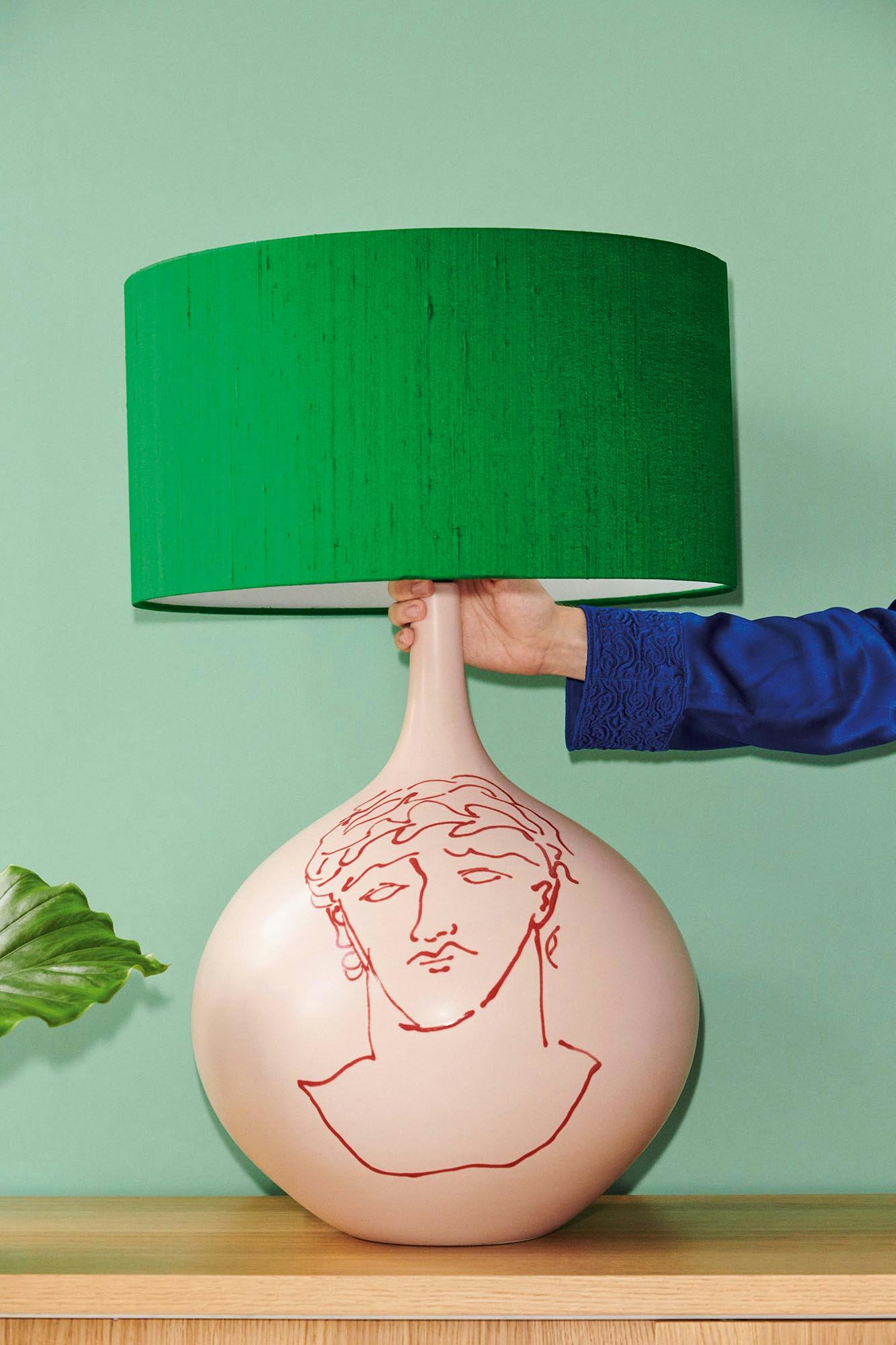 'I wanted my collection with Habitat to feel playful, slightly surreal, and very romantic. Inspired partly by the circus, partly my love of mythology, I have reinterpreted several of my favourite motifs in new ways. Faces of imagined characters and long lost statues appear on lamps and fringed cushions, whilst emerald green and sky blue striped velvets adorn a classic Habitat armchair and sofa.'