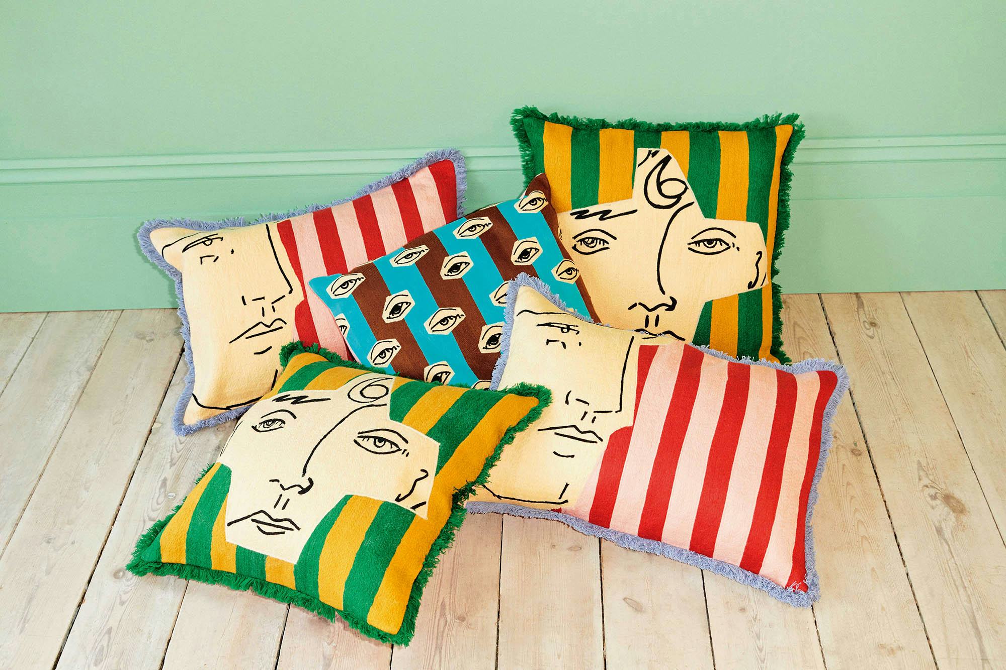 The collection features illustrative serpents, circus stripes, fringes and figurative artworks that give a glimpse into Luke's colourful mind, re-imagined in collaboration with Habitat’s Design Studio to bring his bold aesthetic to modern spaces.