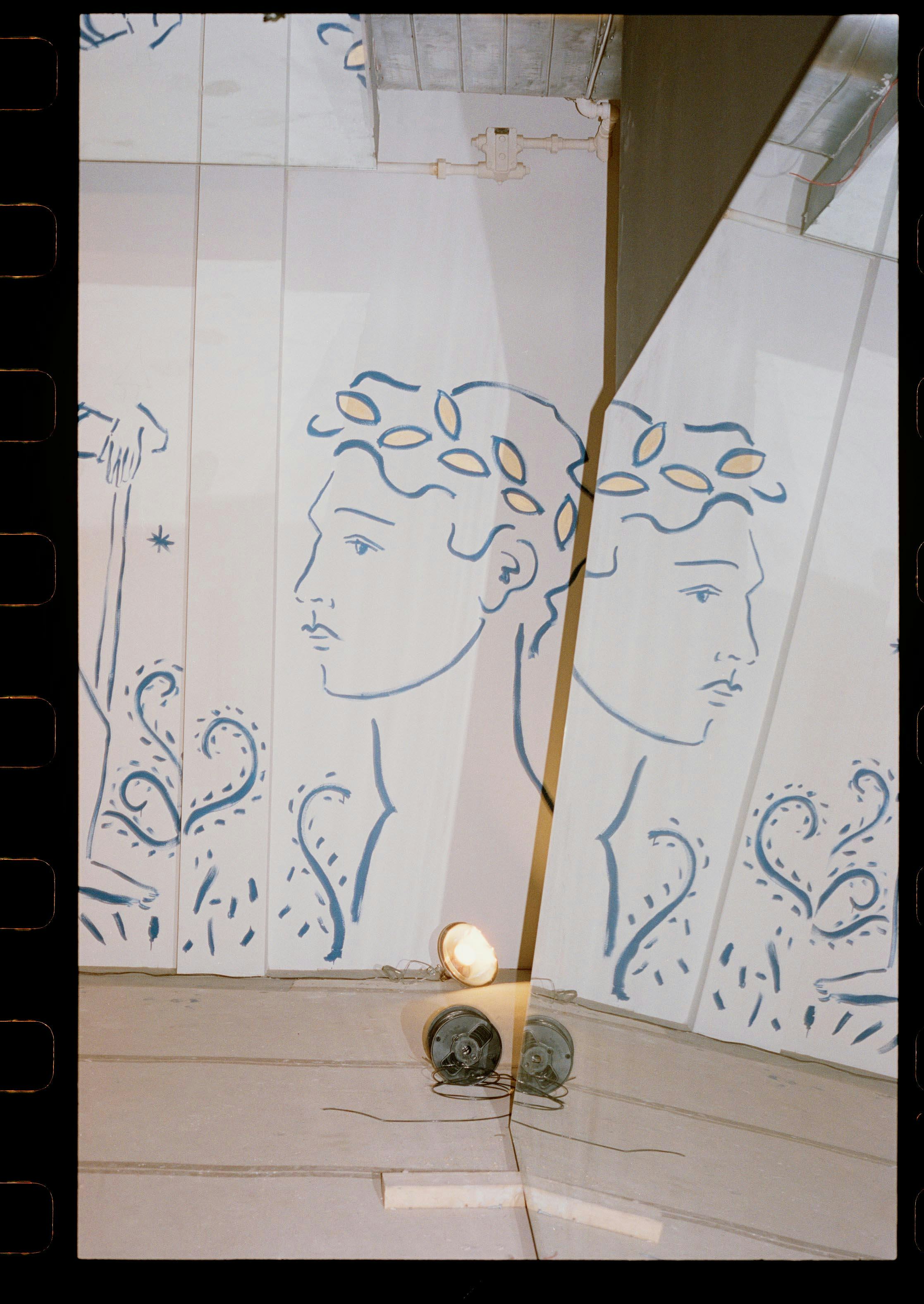 The 72-foot mural was inspired by classical myths and legends and depicts fragments of ancient busts, statues and architecture amidst wild natural landscapes.