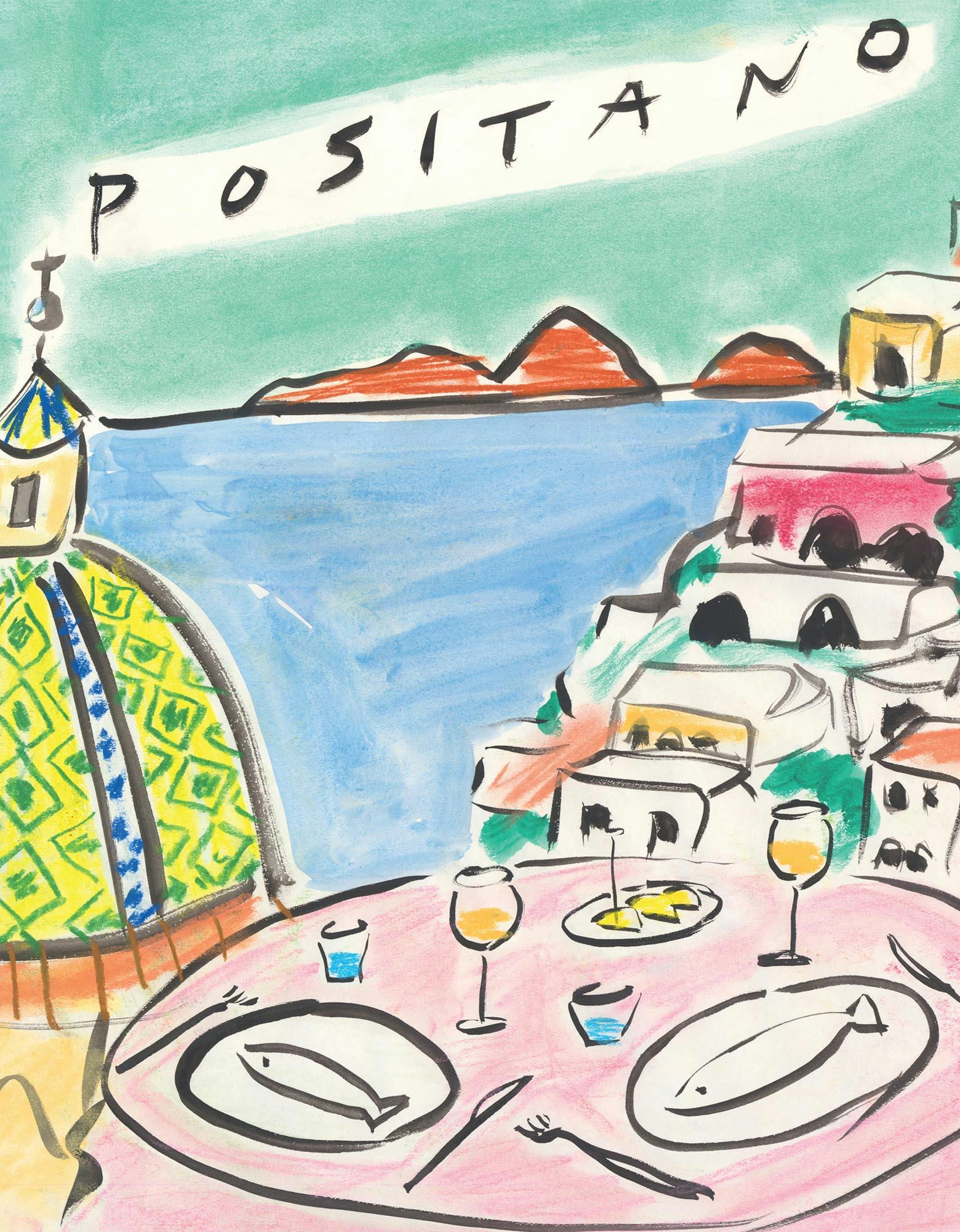 Luke has been a guest at Le Sirenuse on many occasions and fell in love with the hotel and the magical atmosphere of Positano when he first visited in 2015. He was delighted to be commissioned by Carla to produce two Positano-inspired illustrations for Emporio Sirenuse’s spring/summer 2018 collection, to be used on shirts, swimming trunks and ceramics.