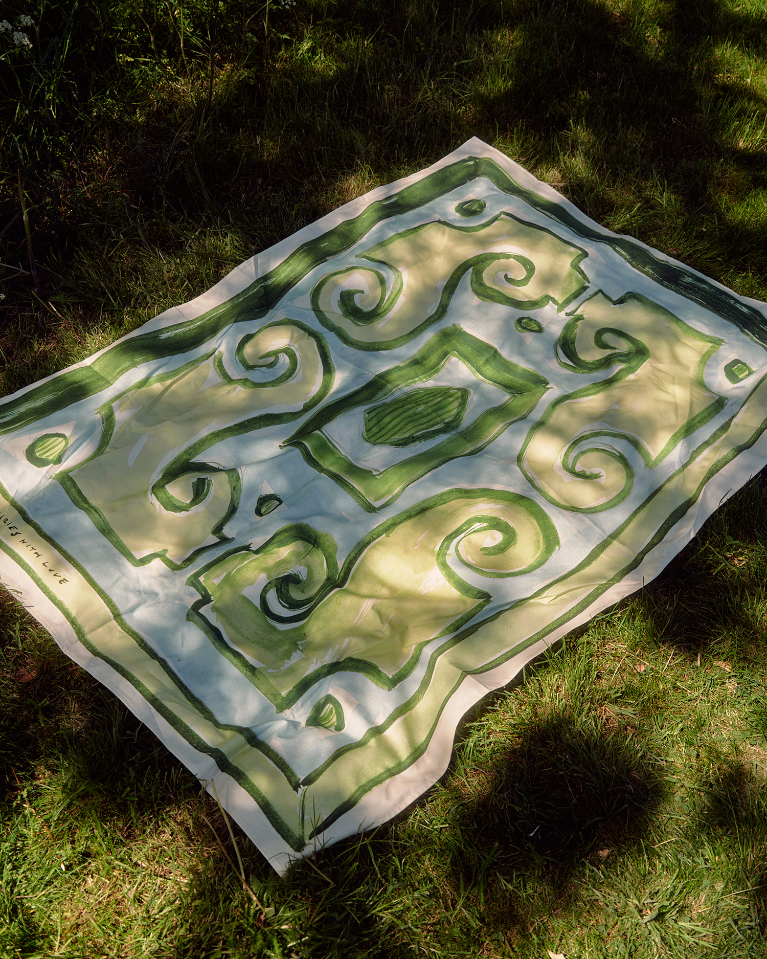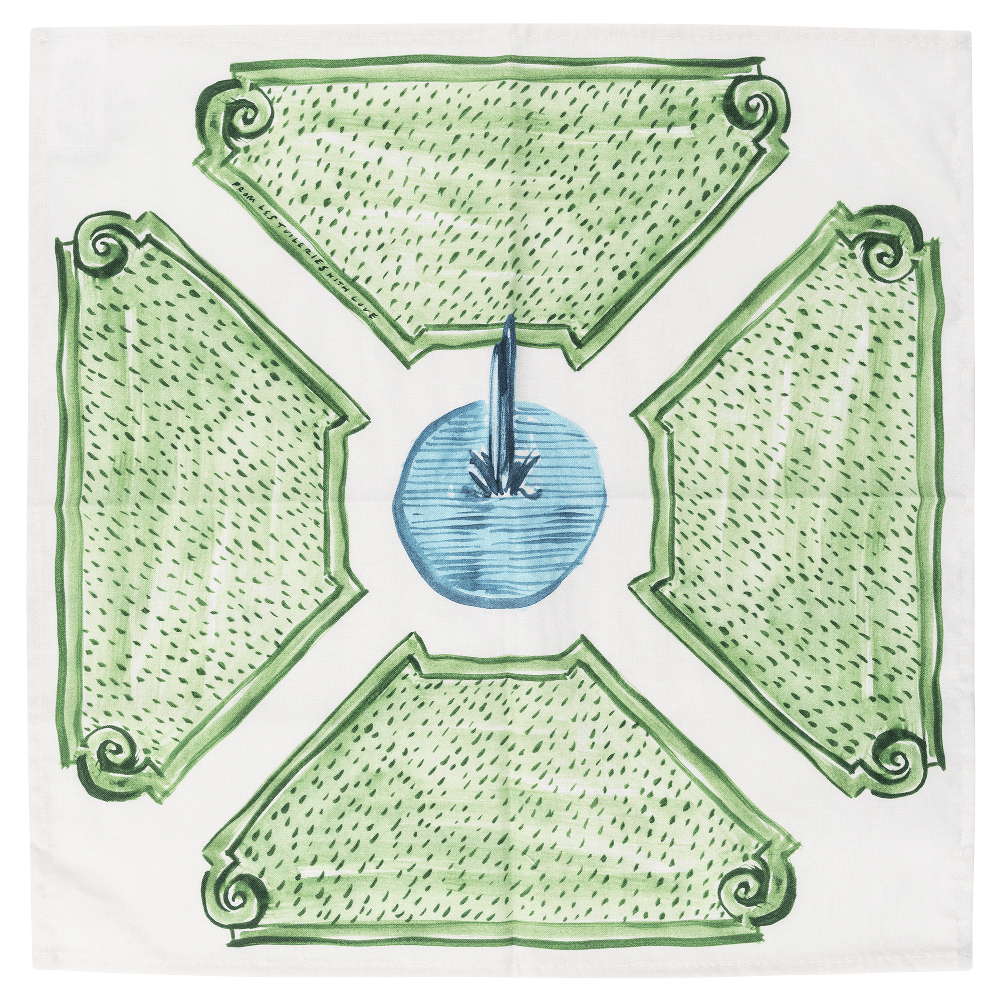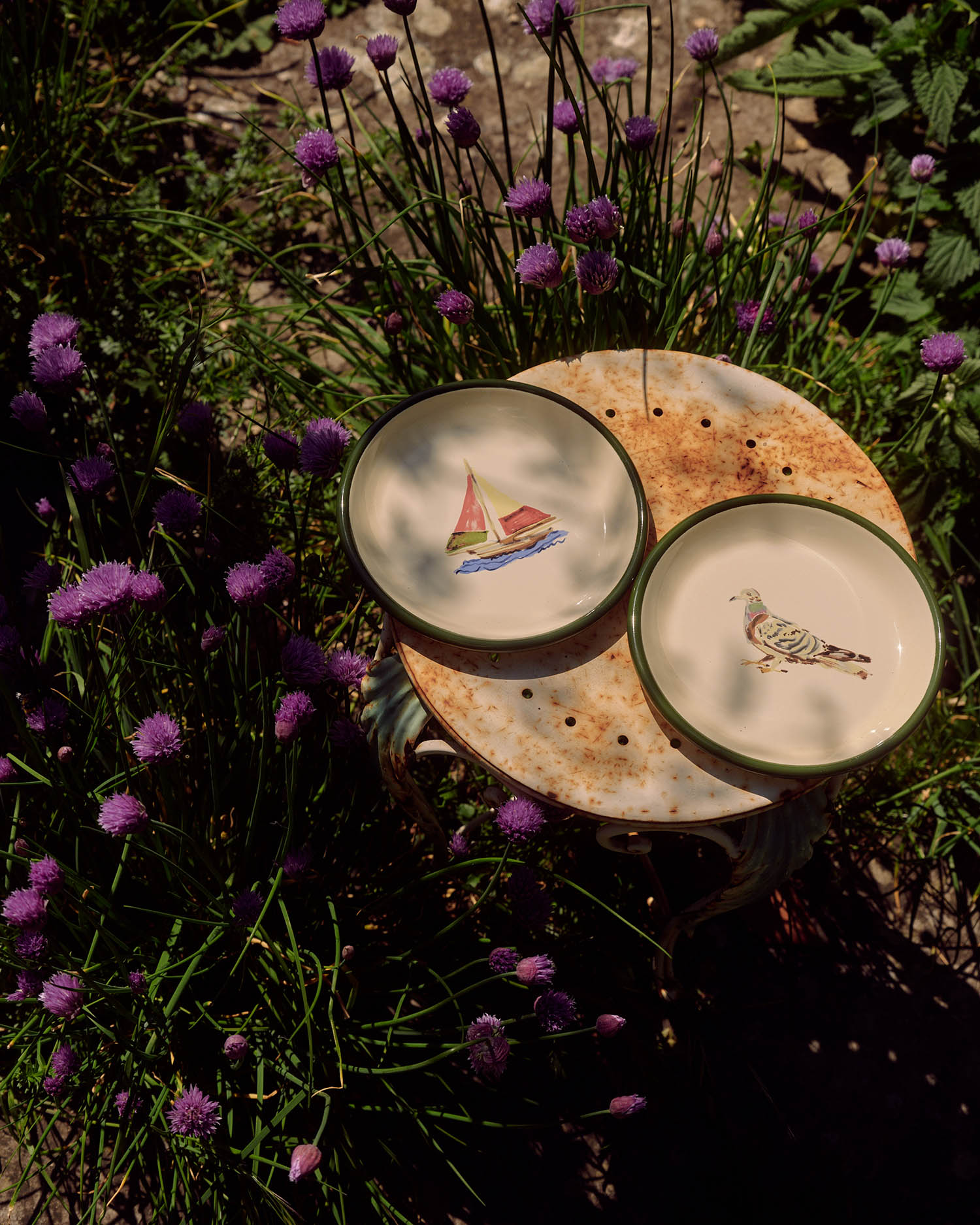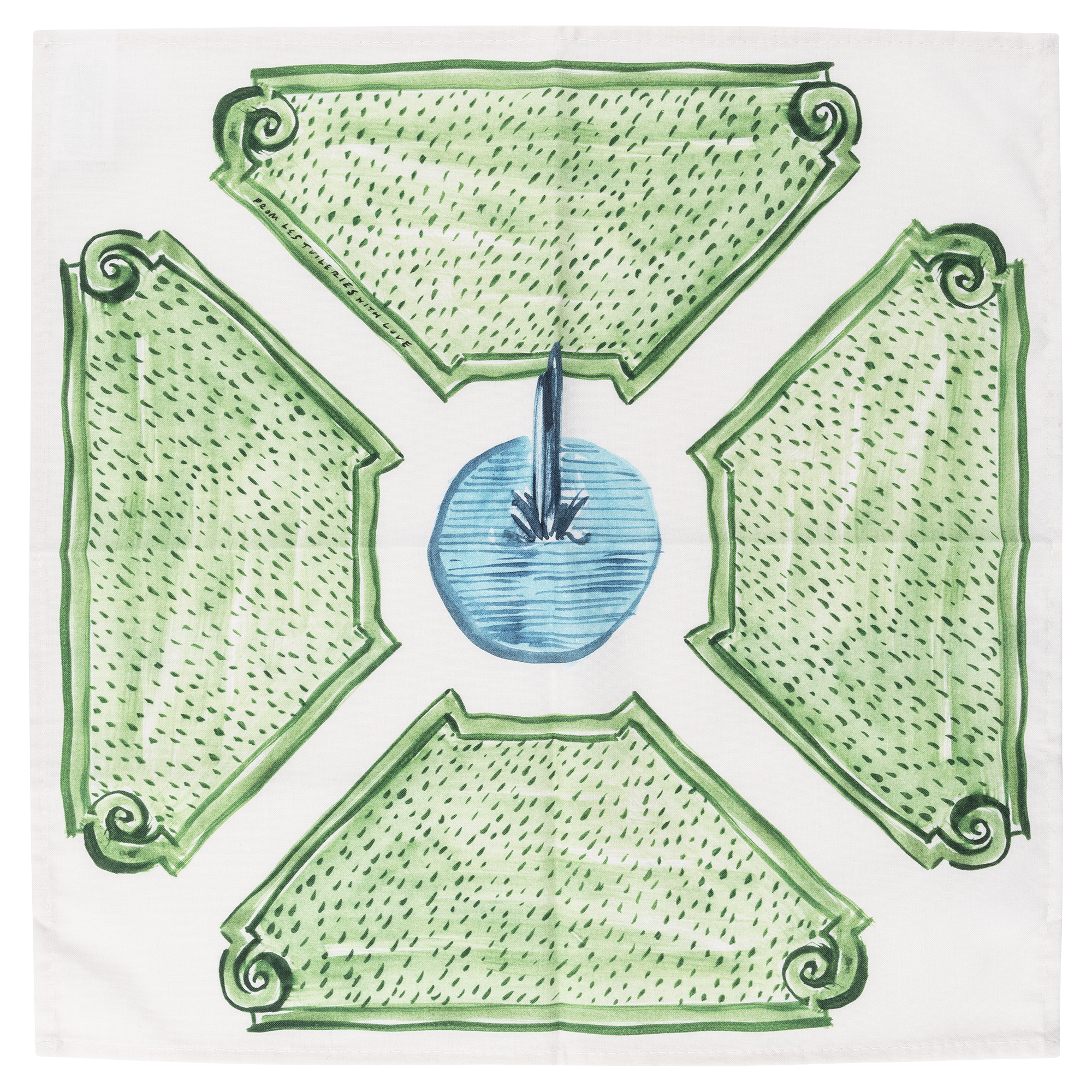 "My inspiration for these drawings and designs came, of course, from the wonderful Tuileries. I spent a day exploring the garden in the autumn of 2024 and afterwards, back in my Oxfordshire studio, I began exploring key themes in response to the elements I felt myself most strongly drawn to during my visit. I knew that I wanted to incorporate several of the garden's most iconic sights into the collection: its toy boats with their colourful sails, and its architectural elements including its urns and statues of Diana and Mercury. I also took inspiration from historic maps and plans of the garden, which I love for their theatrical geometry and intricate patterns."
