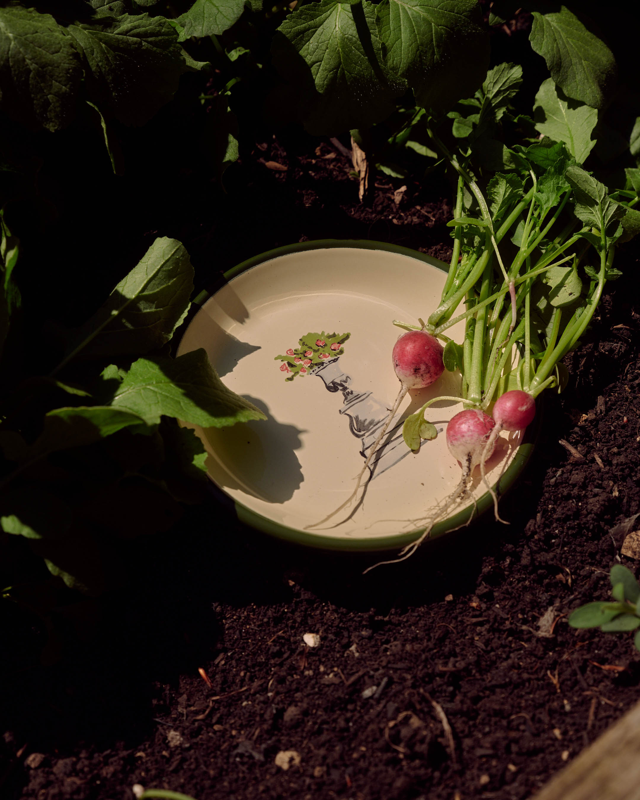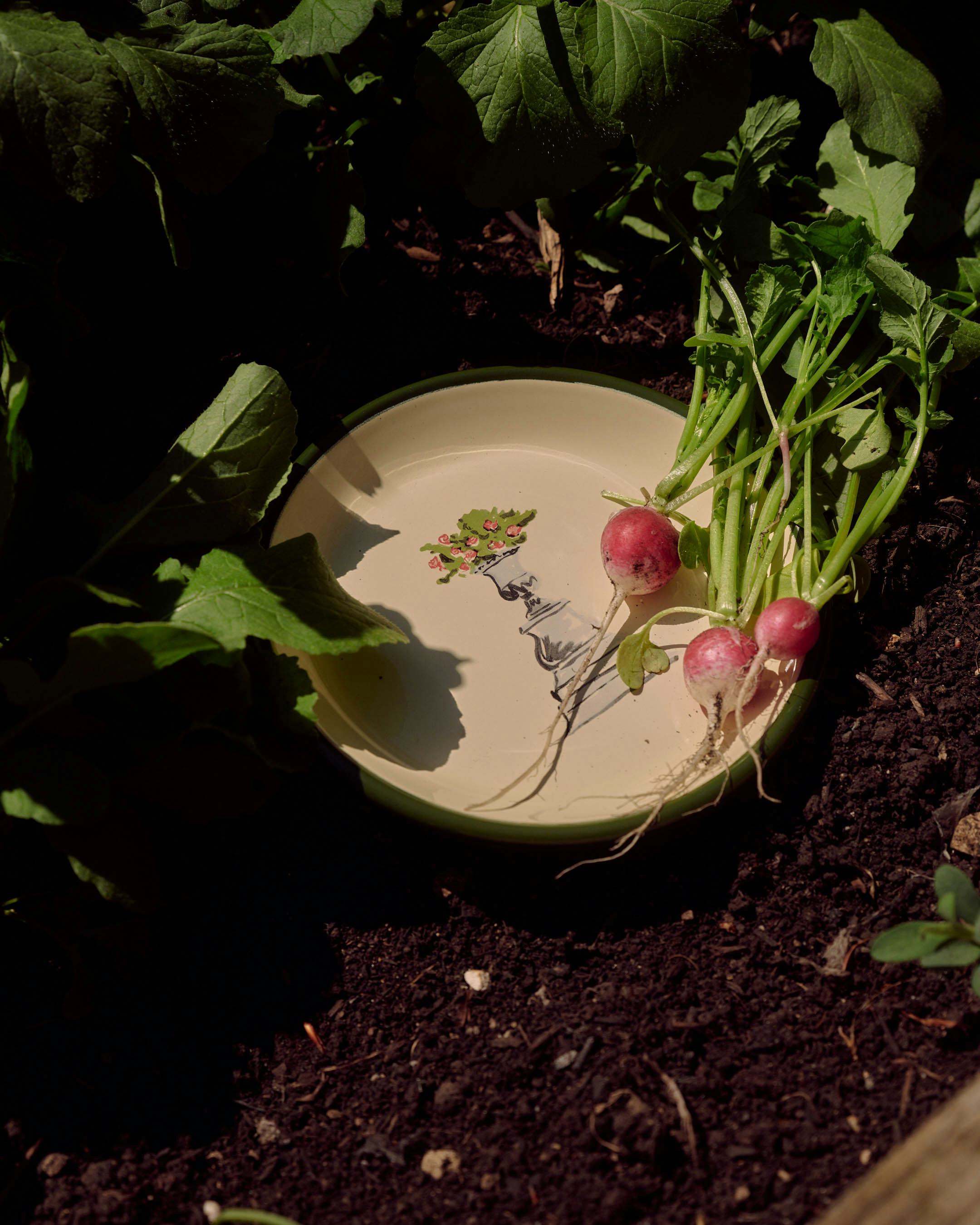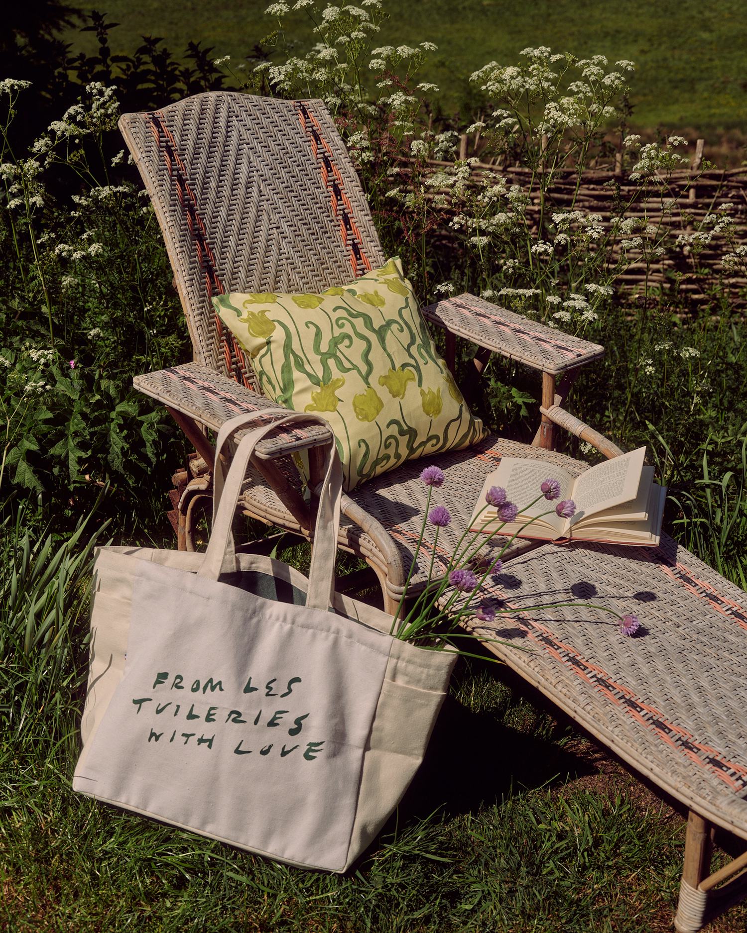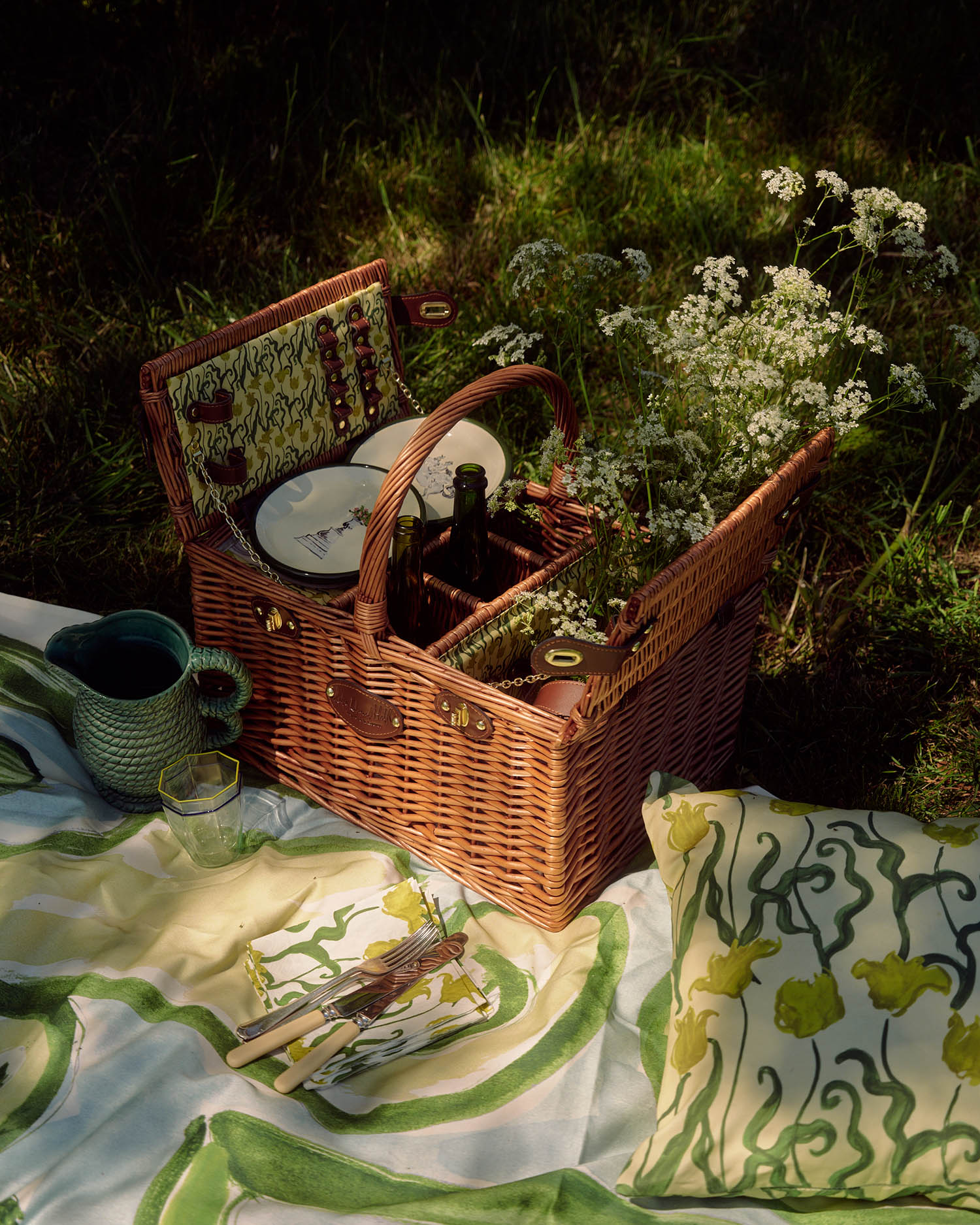 To celebrate the Tuileries, which form an integral part of the Louvre estate, the museum entrusted its historic garden to Luke in the spring of 2025. The result? A collection for the shop at the Louvre containing everything one might need for a pastoral picnic: a wicker basket filled with his plates, cutlery, napkins, a tablecloth and more.