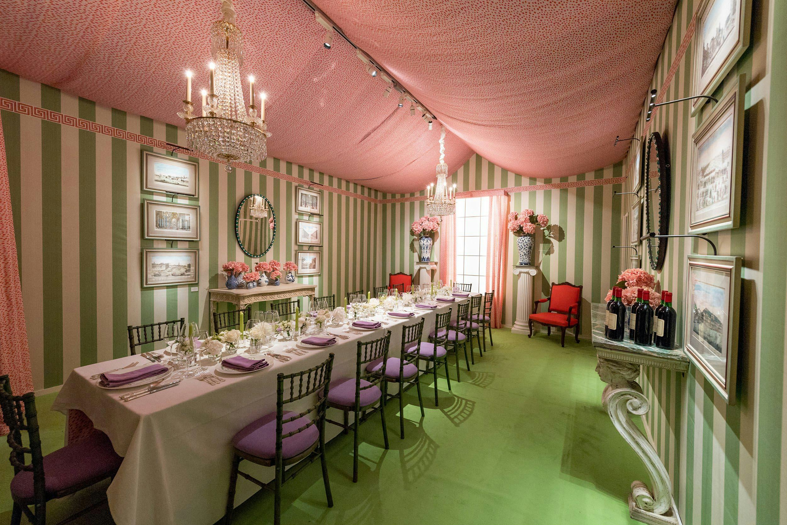 For the 2018 fair, Luke was commissioned by Masterpiece London to design a temporary private dining room to be used for events throughout the duration of the fair. Luke decorated and furnished the room with the idea of evoking the spirit of an English country house dining room in high summer.