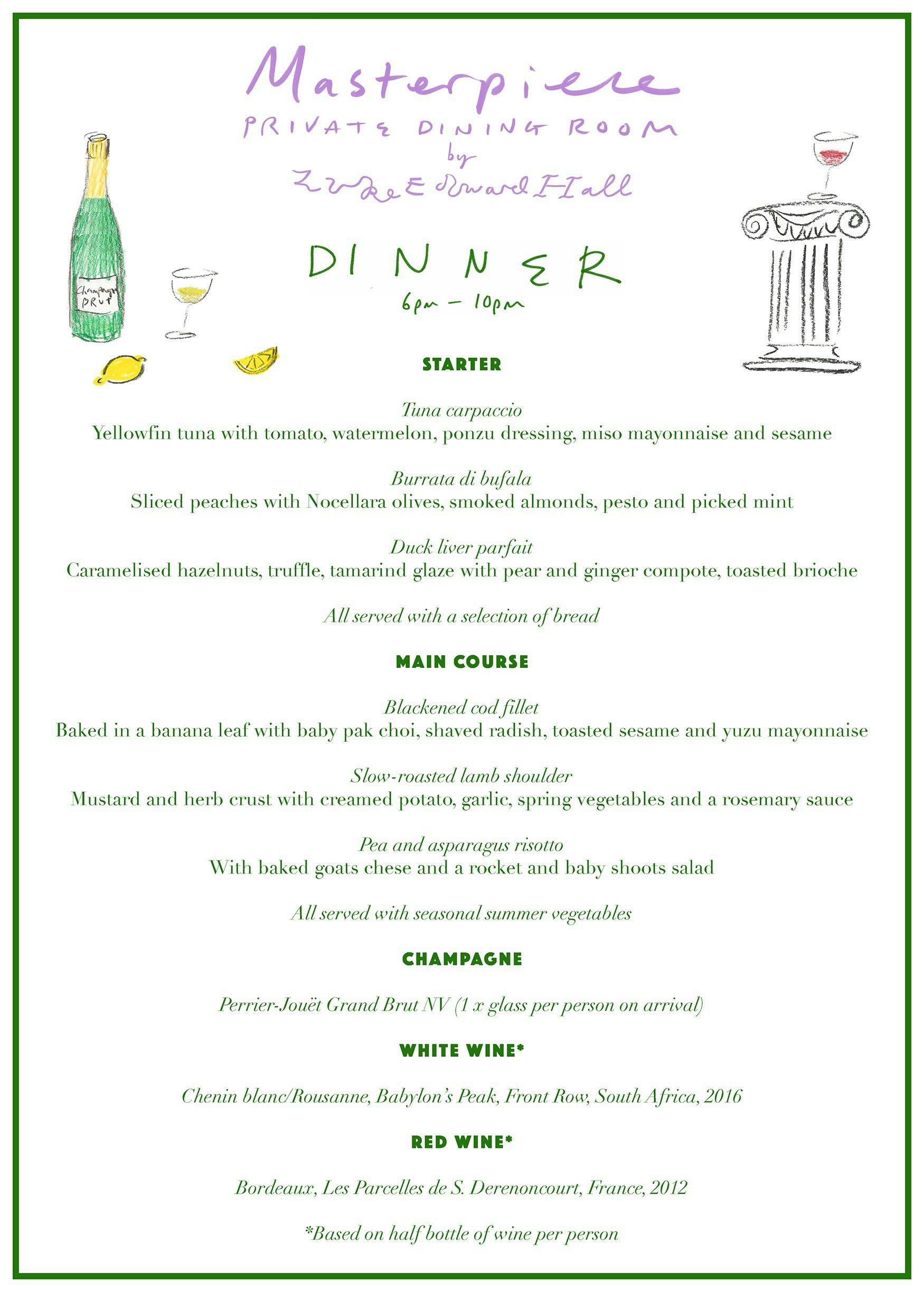To complete the experience, Luke designed and illustrated a set of menus.