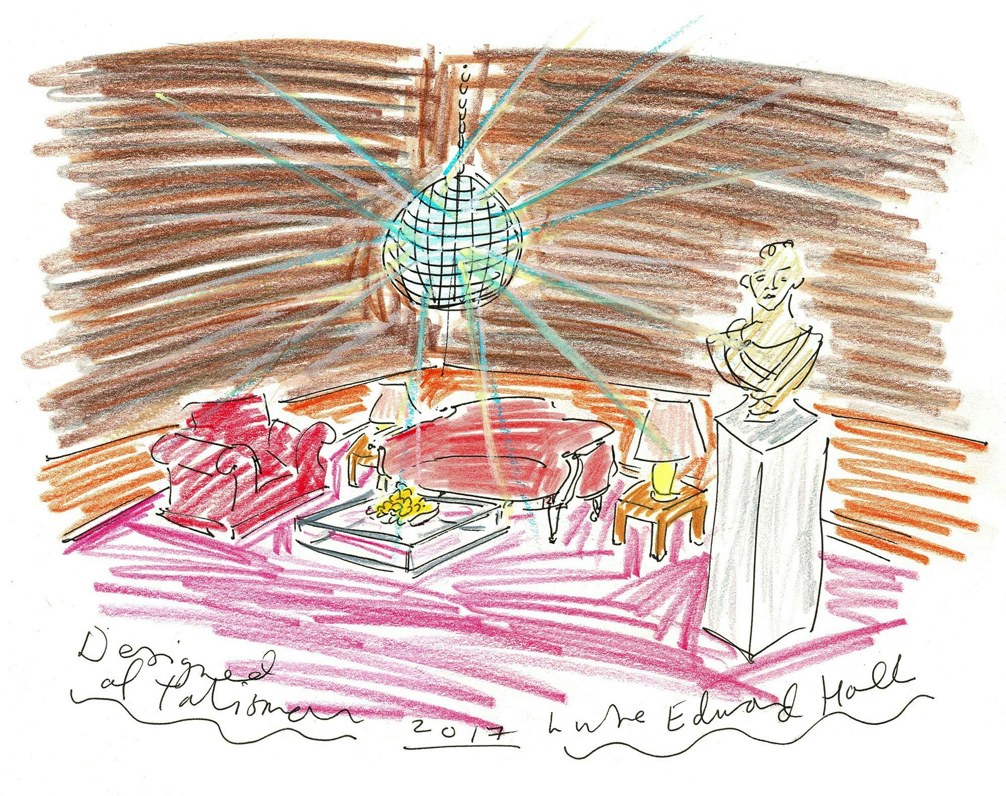 For London Design Festival 2017, Talisman turned their New Kings Road showroom into a striking 'house' and gave eight designers, including Luke, a room each to decorate using pieces from Talisman's vast collection of furniture, lighting, art and accessories. Luke created a Disco Drawing Room - a dark den for late night cocktail parties, inspired by interiors from the 1970s.